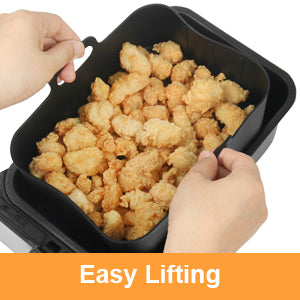 - Square silicone pot for air fryer, reusable and washable
