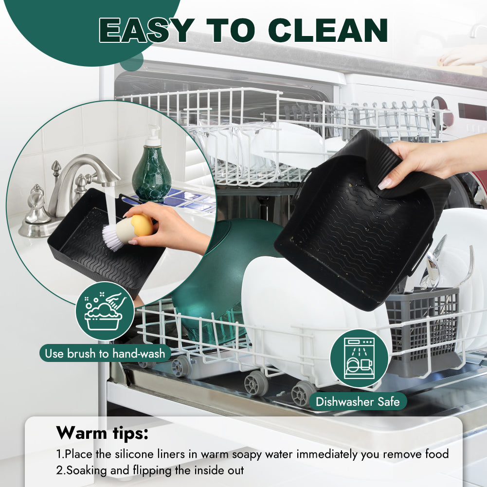 - EASY TO USE & EASY TO CLEAN: The air fryer liners for 10.4 litre af500uk is designed with handles on both sides to make transferring the food to plate easier. The large rectangle air fryer liner is soft and flexible. And please place the silicone liners in warm soapy water immediately you remove food and after soaking, flipping the inside out, use brush to get off the stubborn bits. It's also dishwasher safe