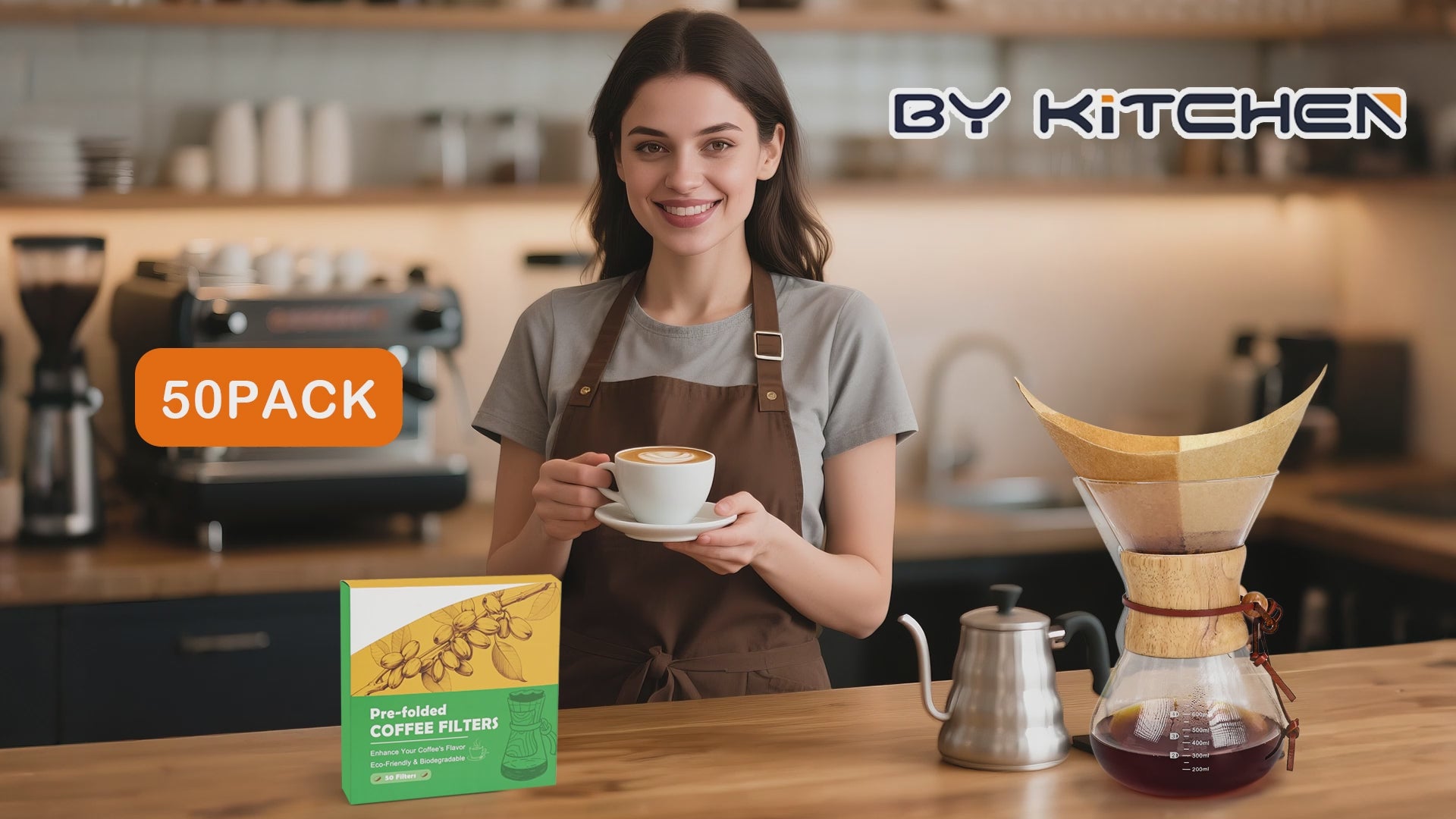 BYKITCHEN Pre-folded Pour Over Coffee Filter, Natural Unbleached Square Disposable Coffee Filter Papers for Pour-Over Coffee Maker Drippers and More(Set of 50)