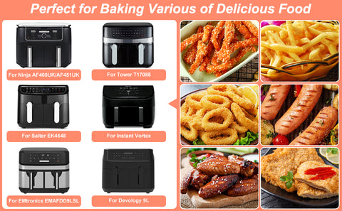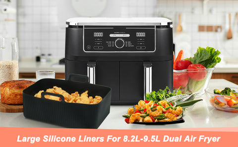 Large air fryer silicone liners,Especially suitable for 8.2L-9.5L Large Dual Air Fryer. Like Ninja Foodi Dual Zone AF451UK / AF400UK, Tower T17088 9L, Instant Pot Vortex Plus 8.5L XL Dual Air Fryer, Salter EK4548, EMtronics EMtronics EMDAF9LD/EMDAF9LD+/Devology Dual Air Fryer and More