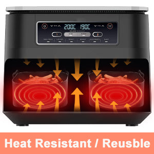 Silicone liners for dual air fryer with side, prevent the grease or residues to the side/bottom of air fryer, basically no cleanup after baking.