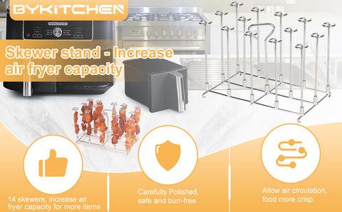 BYKITCHEN Skewer Stand for Ninja Dual Air Fryer, Stainless Steel Kebab Rack, Accessories for Ninja AF300UK/AF400UK/AF451UK/AF500UK,Also Compatible with Salter/Instant/EMtronics 9L Double Drawer Fryer