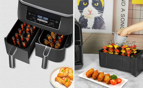 - 【Perfect Air Fryer Accessories】: Can be used in air fryer to bake or cook various of food, such as kabobs, chicken, meat, seafood, vegetables and more