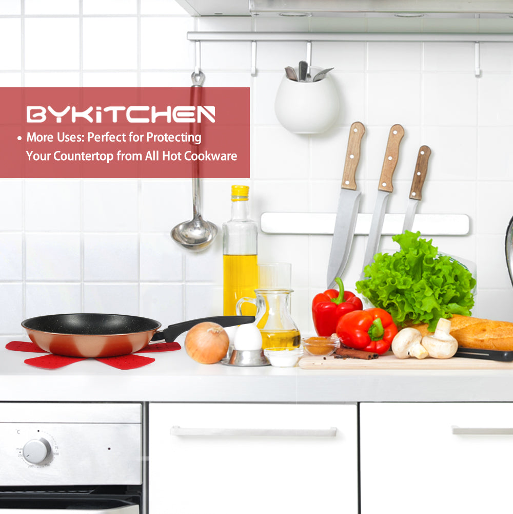 - ➤【MORE USE】 You can even use them to prevent the hot pot/ pan/ plate/ dishes from damaging your countertop, a good helper for your kitchen. Reminder: The pan protectors are shipped folded in half, please flatten and weight on a flat surface for a while after you get it, or use an iron to smooth the crease.